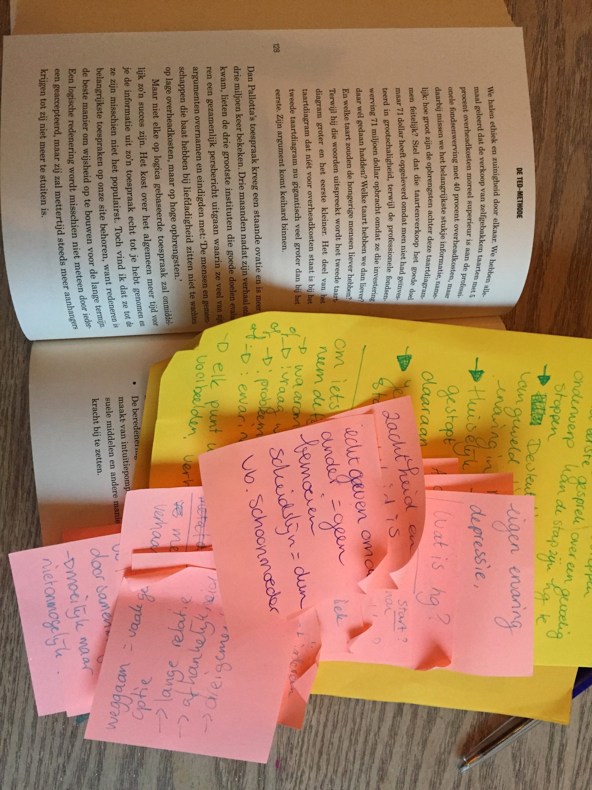 Ik besluit mijn coach Henriette even om steun te vragen. Zij was de hele reis naar dit moment toe mijn baken van vertrouwen. Gaf mij vertrouwen en stimulans om mijn talk op mijn manier in te richten, maar oog te houden voor het publiek. Want lang niet iedereen die daar zit is bekend met huiselijk geweld en de valkuil is dan om te technisch te worden. Er vanuit te gaan dat zij wel begrijpen waarover het gaat en de impact die het heeft op de vrouwen, mannen en kinderen die er met regelmaat mee te maken hebben.